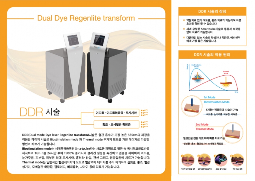 영국 chromogenex 사의 Dual Dye Regenlite Transform 레이저 도입했습니다.